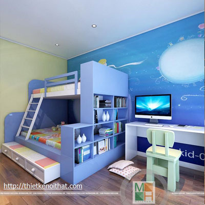 Thiết kế nội thất phòng ngủ cho bé rất quan trọng trong sự phát triển của trẻ nhỏ. Thiết kế đẹp tiện dụng an toàn giúp bé thực sự yêu thích không gian riêng của mình. Bố mẹ hoàn toàn có thể lựa chọn cho bé những mẫu giường ngủ cổ điển, tân cổ điển hay giường gỗ công nghiệp, giường gỗ tự nhiên từ gỗ óc chó Mỹ, gỗ sồi Nga, gỗ công nghiệp chống ẩm laminate, mdc, mfc,... hay cả những mẫu giường ngủ độc đáo lạ mắt về kiểu dáng có thể tạo hình hay uốn cong hay khắc trạm trổ đường nét tinh xảo như kiểu dáng cổ điển, tân cổ điển hay sinh động với giường tầng trẻ em hình oto,.. Ngoài ra, phòng ngủ cần đầy đủ tủ quần áo, bàn học tập.