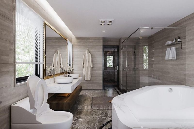 Thiết kế nội thất phòng tắm biệt thự sang trọng, hiện đại