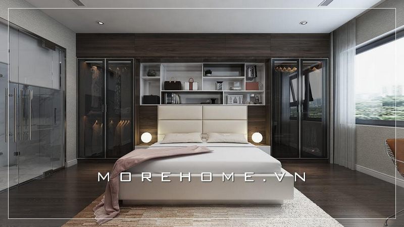 Giường ngủ hiện đại với thiết kế đầu giường khoảng cách lớn tạo cho chủ nhân căn phòng thoải mái và đầy sang trọng