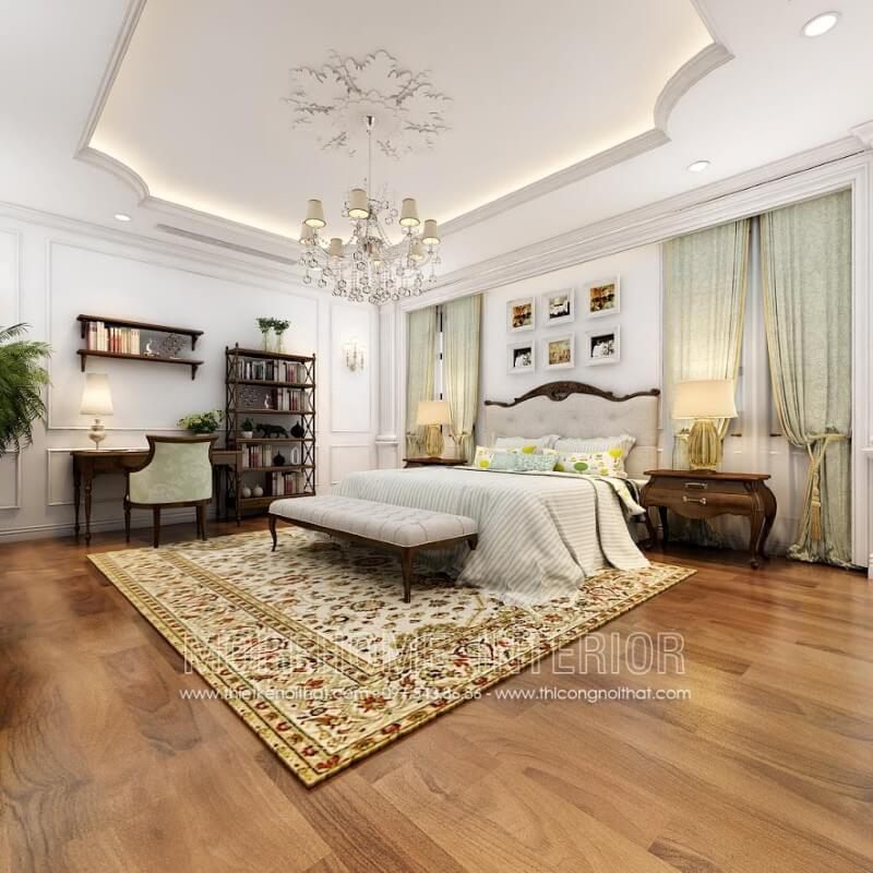 Mẫu táp đầu giường tab đầu giường tân cổ điển cao cấp bằng gỗ óc chó sang trọng tại không gian phòng ngủ biệt thự