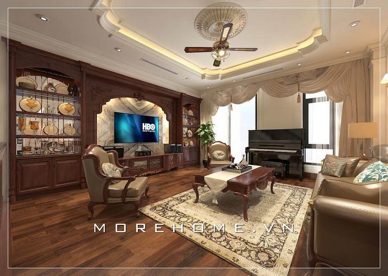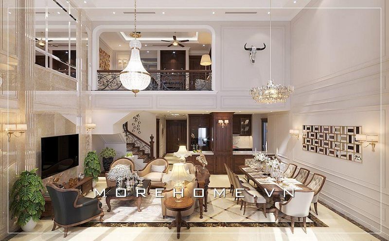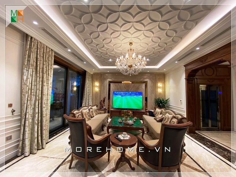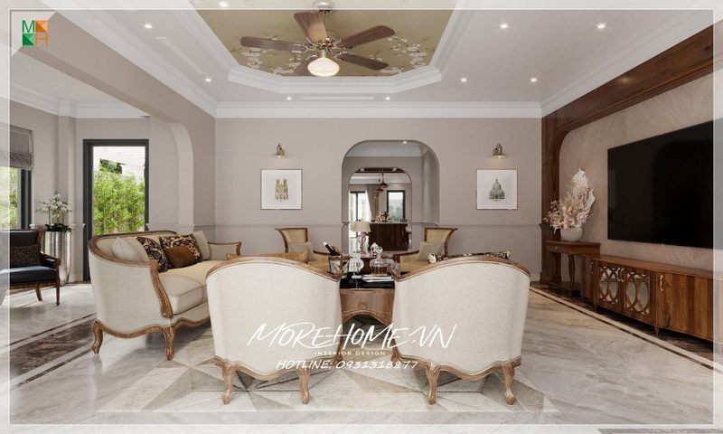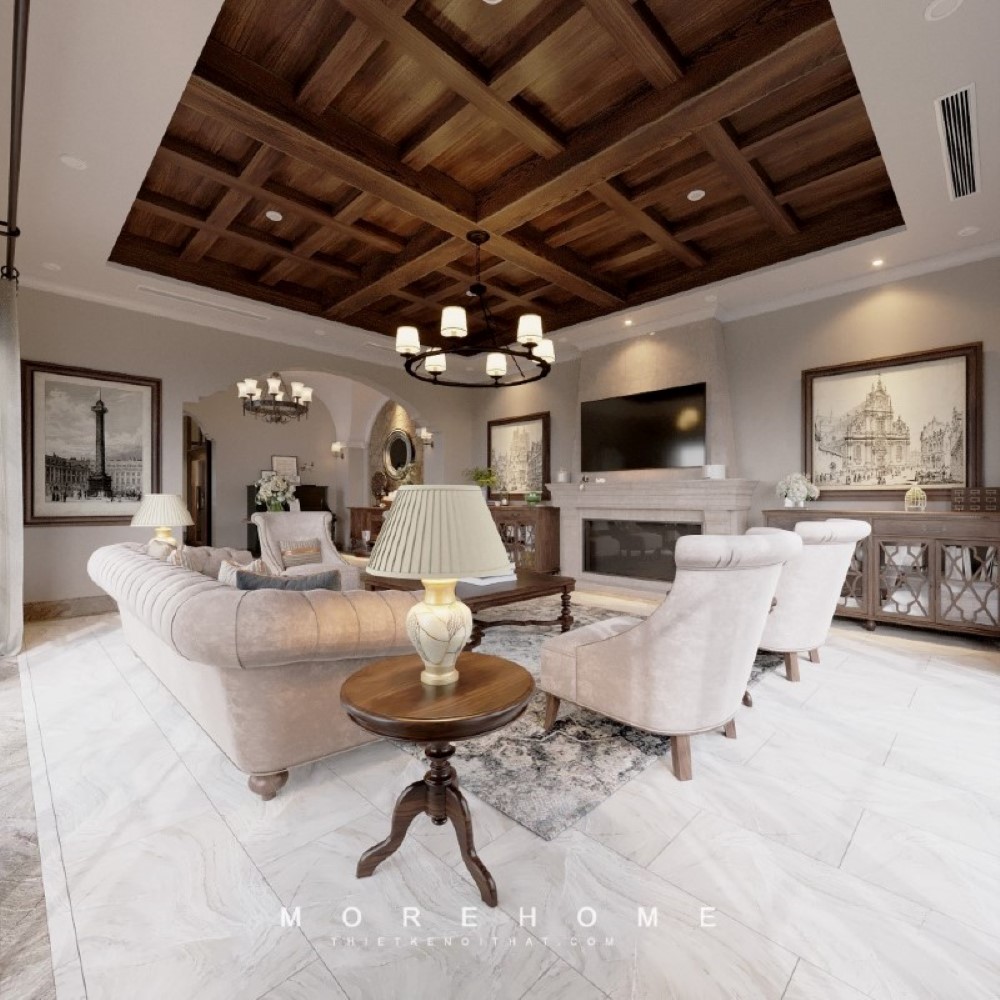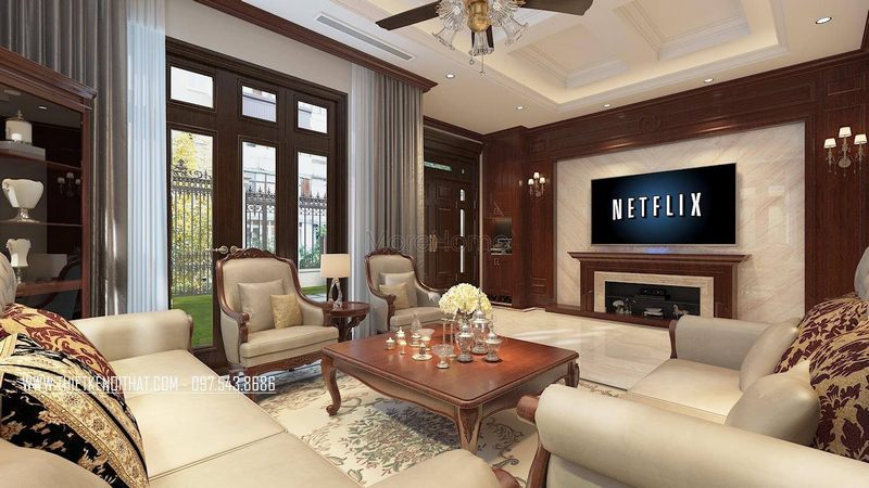 Thiết kế nội thất phòng khách biệt thự phong cách tân cổ điển sang trọng, đẳng cấp