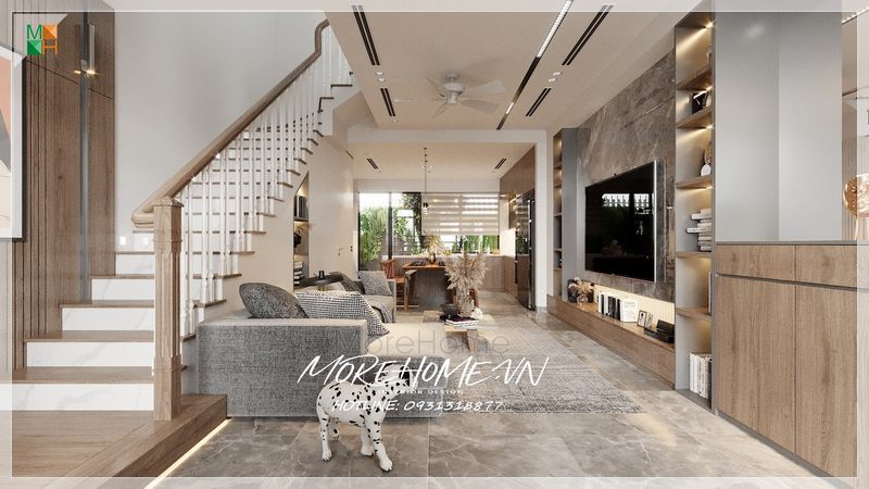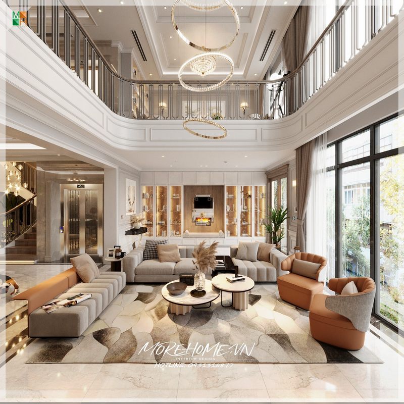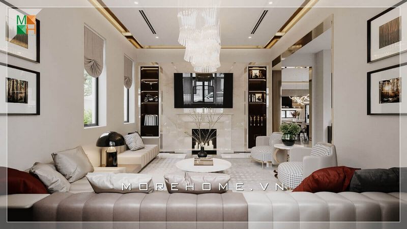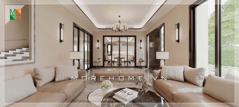MoreHome tập trung sử dụng các mã màu trắng, be, màu cát, oliu giúp không gian biệt thự trở nên sang trọng và sáng hơn