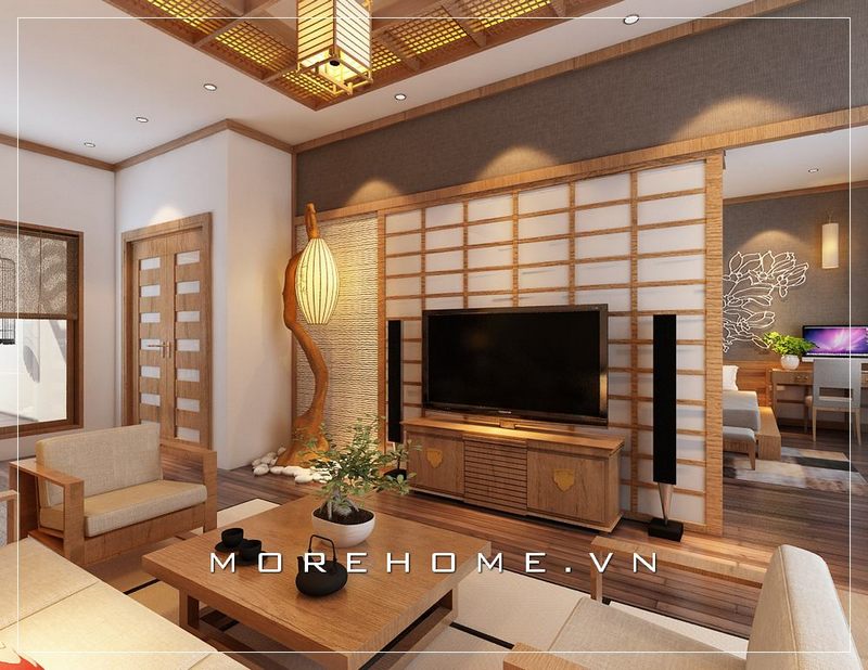 {Thiết kế|Trang trí] phòng khách theo phong cách nhật bản với màu nâu một không gian mang đậm dấu ấn của nhật truyền thống, tinh tế và trang trọng
