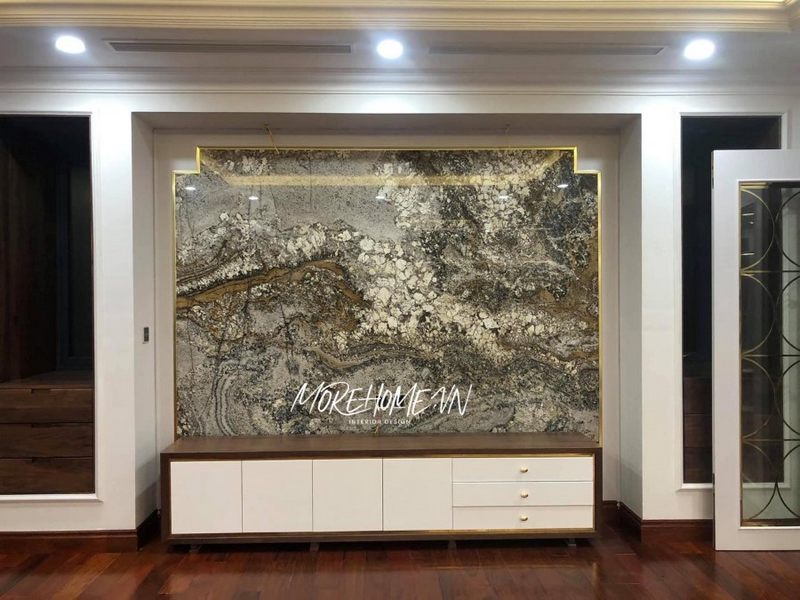 Sản phẩm ốp vách tivi bằng đá granite cao cấp do Morehome cung cấp và lắp đặt