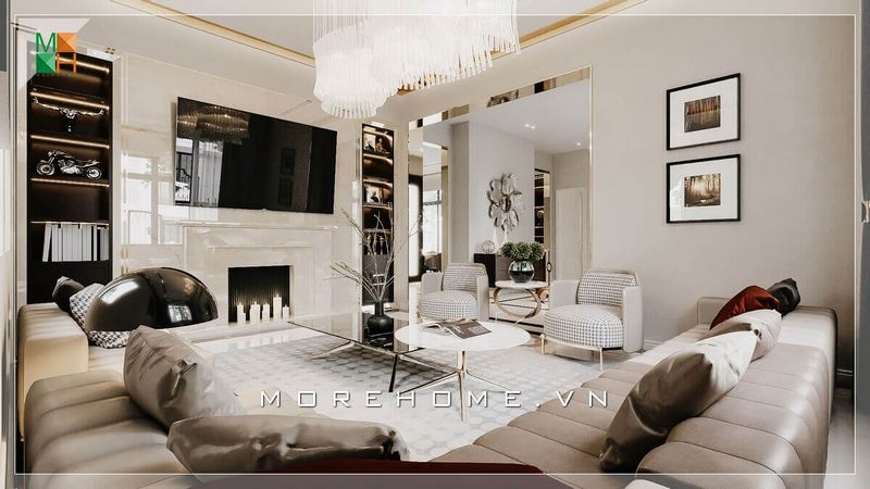 Thiết kế nội thất phòng khách chung cư, biệt thự, nhà phố mang phong cách tân cổ điển sang trọng, tinh tế.
