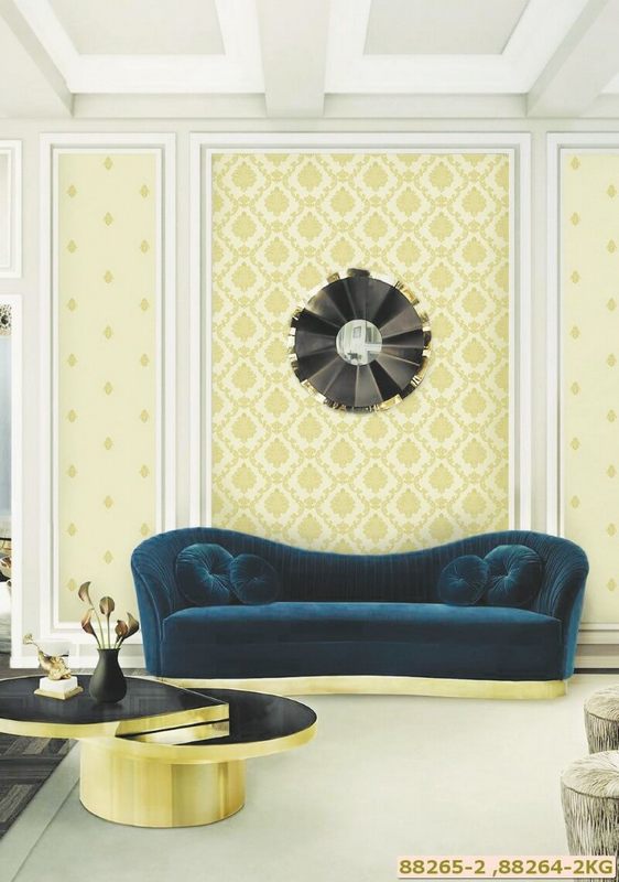 Màu vàng của giấy dán tường tân cổ điển góp phần tạo nên sự sang trọng cho căn phòng.