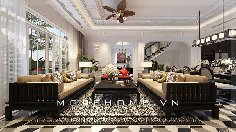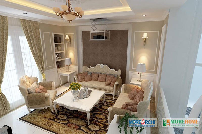 Thiết kế nội thất cho phòng khách biệt thự có phong cách tân cổ điển tinh tế, sang trọng và đẳng cấp.